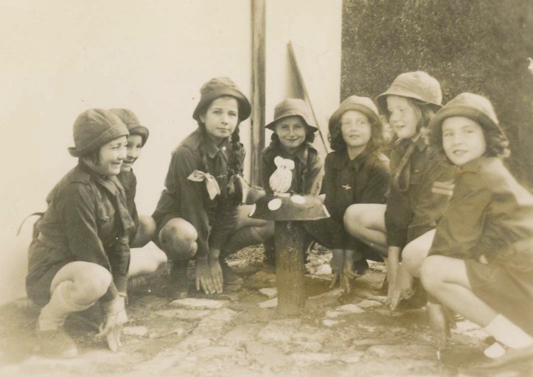 1st West Preston Brownies – note the traditional Brownie toadstool at the centre of the group (WPM 1/5/3)