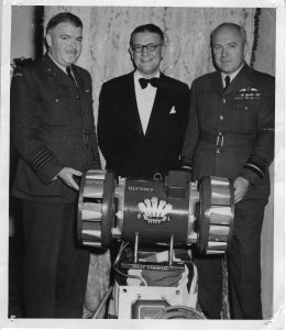 Ross Tilley being presented with the air raid siren from East Grinstead (Tilley is on the left) © East Grinstead Museum, reproduced with their kind permission