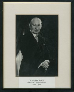 Ophthalmologist Benjamin Rycroft arrived at Queen Victoria Hospital at the end of the Second World War to establish a new corneo-plastic department. The field of corneal surgery was one which was developing and growing in prominence but Rycroft’s progress in his work was initially hampered by a shortage of donor eyes, mostly because at that time in the United Kingdom it was actually illegal to donate body parts to the medical profession.  Rycroft (along with McIndoe) played a leading role in a national campaign to educate the public on the urgent need for donor eyes to enable sight-saving corneal grafts to be carried out. In 1952 the Corneal Grafting Act was passed by Parliament and became law, and the country’s first Eye Bank was established at Queen Victoria Hospital. Many hundreds of the QVH case files document the treatments and procedures undergone by patients who were able to benefit from Rycroft’s pioneering efforts in this field.