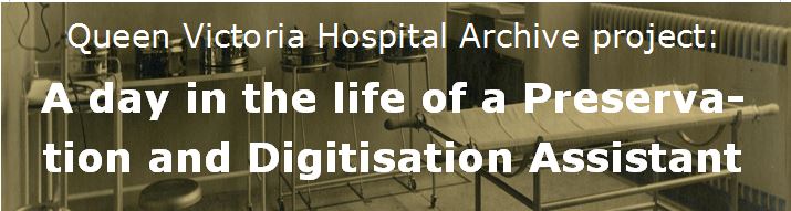 My name is Lucy Maguire, and I worked on the Queen Victoria Hospital Archive Project as a Preservation and Digitisation Assistant between August 2016 and September 2017. As the title suggests, my job was broken up into two main parts but within each there was a wealth of surprises, which made every day its own unique challenge.