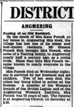 This I think is borne out by the obituary notice in the Worthing Herald on 5 May 1939 for Kate Pocock, where it states she was a member of the Women’s branch of the British Legion.
