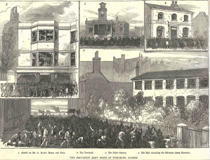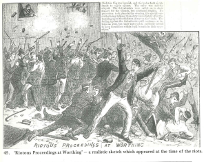 In 1882 a riot had occurred in Bethnal Green, where members of the Salvation Army were pelted with flour, eggs, stones and so on. This news spread across Southern England and in 1884 a similar event played out in Worthing.