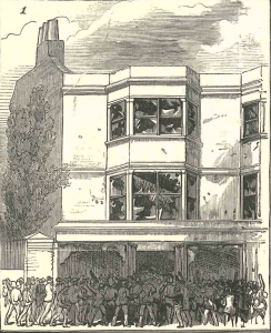 Over 1,000 people descended on Worthing’s Salvation Army barracks, the landlord’s home, the town hall and the police station, protesting the Salvation Army’s complaint about a nearby store selling alcohol. The alleyway which held the entrance to the barracks was tarred and eggs filled with blue paint were thrown.