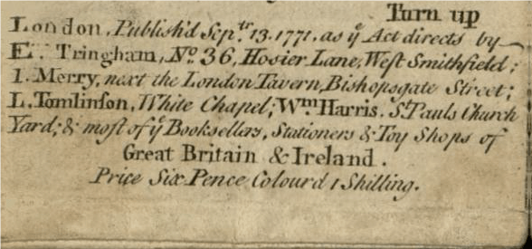 We know it’s a children’s book because of the information listed on the first page which states where it is sold – at ‘most of ye booksellers, stationers and toy shops of Great Britain and Ireland’. The fact that it was bought 17 years after the original publication may be a sign of its popularity or equally the presence of second-hand book shops.