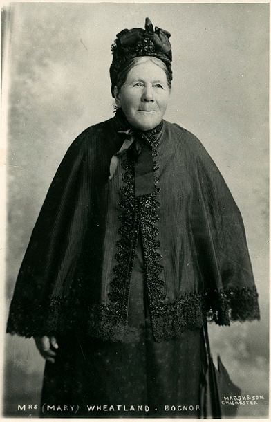 Mary Wheatland was the manager of the Bognor bathing machines from the 1860s until her retirement in 1909. She was an iconic character not least because she was responsible for the safety of her bathers, saving many lives during her tenure as the ‘bathing woman of Bognor’.