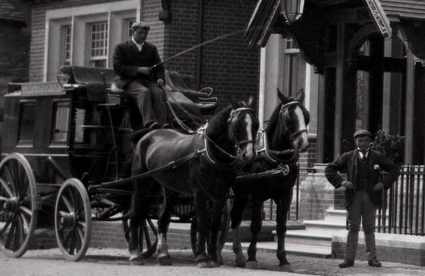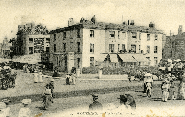 The Beach Hotel in Bognor (image PH 3963) as seen in around 1900. Bognor is more recently famous for Butlin’s which opened in 1932 with an amusement park. A zoo was then added and finally a holiday camp was launched. Similarly, the Marine Hotel in Worthing (image PH 575) was a popular beachfront hotel, and it is seen here also around 1900. Lastly, in the heart of West Sussex was the sizable Swan Hotel in Petworth (image Kevis 4-360) which employed many local people from the surrounding area during it’s time, until it closed in the 1980s.