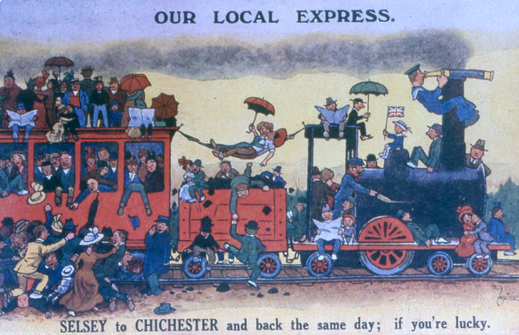 Selsey, like a number of resort towns on the coast of West Sussex, was a popular destination for day trippers in the early 20th century. Note the language used in this poster, “a healthy rural village”. The clean, fresh air and comparatively slower pace of life in rural towns was a tonic to worn-out city dwellers and factory workers. Those with a little more to spend may have even stayed in a local boarding house or B&B, or perhaps a hotel if they were feeling extravagant.