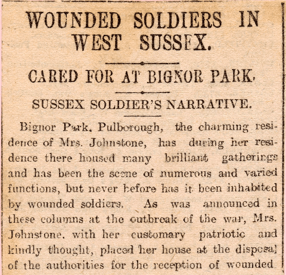 Bignor park, once the family home of the Romantic author Charlotte Turner Smith, was offered as a Red Cross hospital by its owner Mrs Johnstone during the First World War.