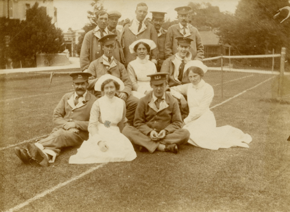 Voluntary Aid Detachment (VAD) nurse, Evelyn Palmer, kept an autograph book of messages from servicemen and a number of photographs of her time working at Bignor Park, all of which we hold in the archive. Many VAD nurses kept ‘tokens’ of their time spent with patients, so significant were their experiences of wartime nursing. It was not uncommon for friendships and relationships to develop from these tense and intimate circumstances.