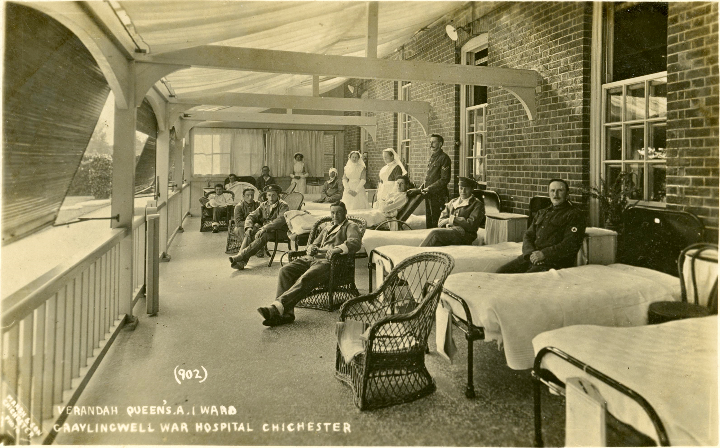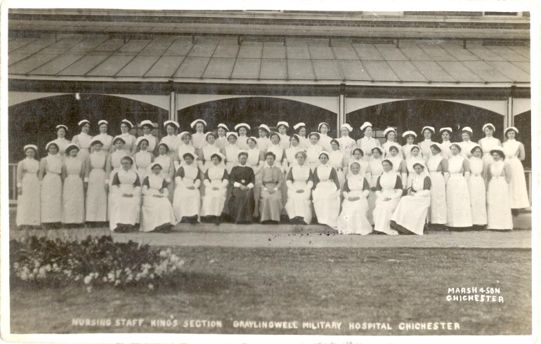 Arguably, the profession of nursing offered the same essential experience for every nurse. Yet, it was the experiences born from a specific place and time which gave each nurse their own unique story, and West Sussex has been home to a number of historically significant institutions. From the medieval hospitality of St Mary’s Hospital in Chichester to the state-of-the-art treatments developed at the Queen Victoria Hospital in East Grinstead, each presented their own challenges. Nurses themselves came with a variety of backgrounds. The young and working class may have began their careers in psychiatric treatment at Graylingwell Hospital. In contrast, middle and upper class women were often those who became VAD nurses, working outside a traditional hospital environment.