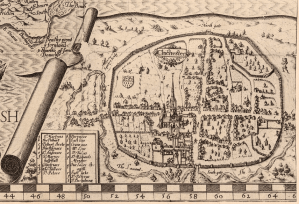 PM 24 – Close up of insert of Chichester within Norden’s map of Sussex, originally published 1595