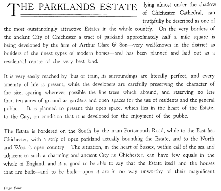 The West Sussex Record Office is keen to collect more examples of such documents, especially originals (the Parklands brochure, though very useful, is only a photocopy). There must be many lurking in lofts or at the back of cupboards.
