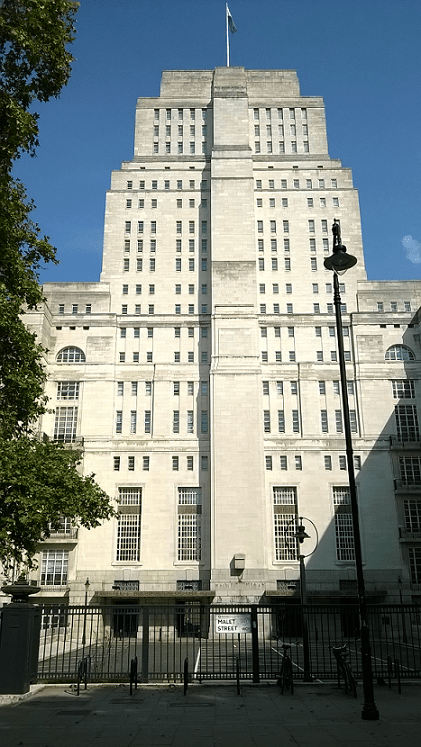 One of the tallest London structures of its time, this now recalls buildings of contemporary totalitarian regimes of both Left and Right. Its interior spaces in fact have served as Nazi HQ in films and TV programmes.