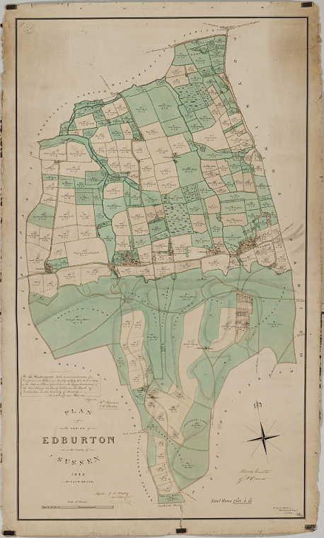 TD/W168 – Edburton Tithe Map, 1842. This Tithe map has been carefully coloured in