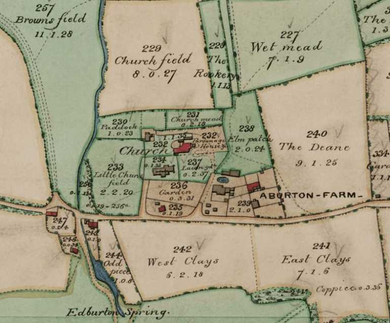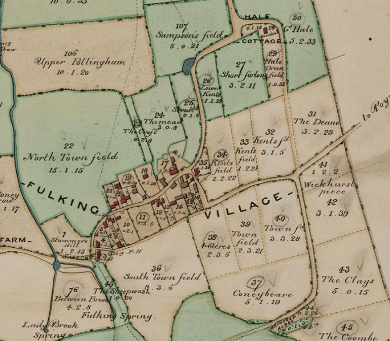 TD/W168 – Edburton Tithe Map, 1842. This section shows Fulking village