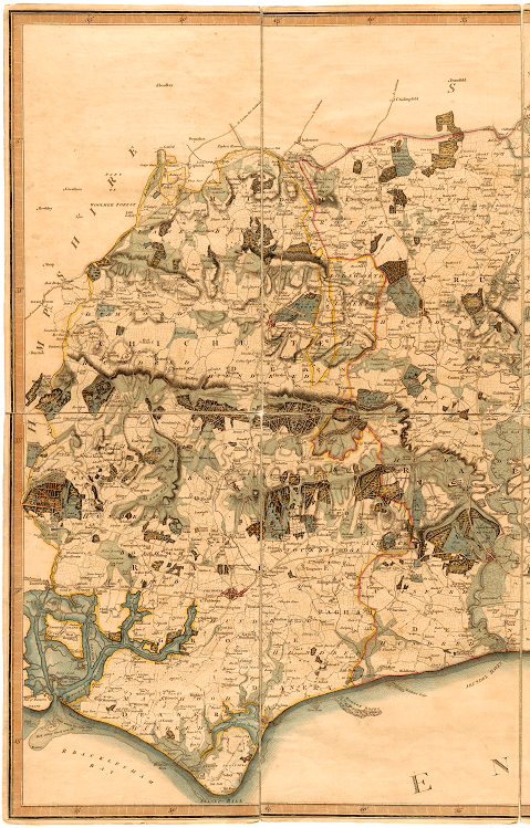 This brings us to Thomas Yeakell and William Gardner. Originally employed by the 3rd Duke of Richmond, Charles Lennox, at Goodwood, their initial map was published across four sheets between 1778 and 1783. This time the scale was two inches to the mile. Their maps were so detailed, and used such modern surveying techniques, that the Ordnance Survey would later use their maps as a starting point.