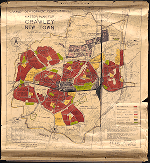 In planning a whole new town, the Crawley Development Corporation had important decisions to make and were given wide ranging powers to implement them. Key among these decisions was the eventual size of the town, with an anticipated population of 30,000 to 40,000, and where exactly all of these people would go. The consultant planner, Anthony Minoprio, was tasked with drawing up a plan which would do this and he proposed an ambitious scheme to fill in the gaps between Crawley, Three Bridges, and Ifield. This master plan was approved in December 1947 and construction work eventually began in 1949. You can read about this item more in depth on one our previous blogs by clicking this hyperlink!