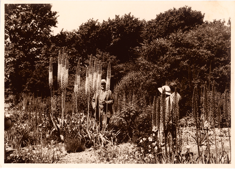The Visitors Book was the key to the project as it was proof that the Sterns were part of the last generation of Anglo-Jewish aristocrats who were obsessed with big game hunting, horses, politics, philanthropy, military life, science and of course gardens. With the signatures I managed to cross reference Stern’s letters in other archives such as at the John Innes Centre in Norwich and the Kew Botanical Gardens archive. There was a surprise on my last visit to Worthing Library when Martin Hayes remembered a forgotten Highdown photo album in the basement of Worthing Library. This contains a memorable image of Stern grinning through his psychedelic eremurus or foxtails lilies.