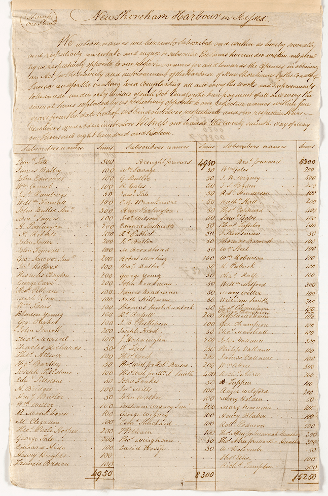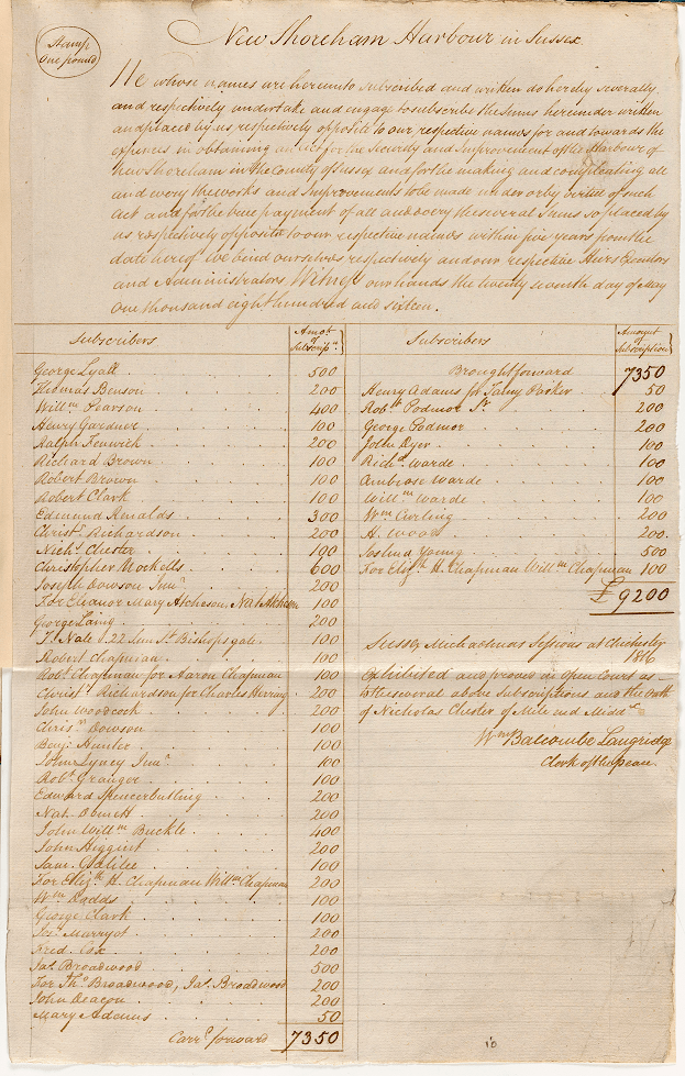 In 1830, Nicholas Bradford from New Shoreham was committed of smuggling 325 gallons of foreign brandy and 28lbs of foreign tobacco. He was fined £17.4s.7d, mitigated down to £4.6s.2d.