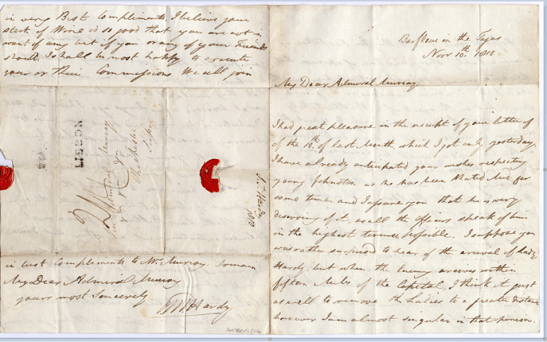 AM 760/1/114: Letter from Vice Admiral Sir Thomas Hardy to Admiral Murray, 1810