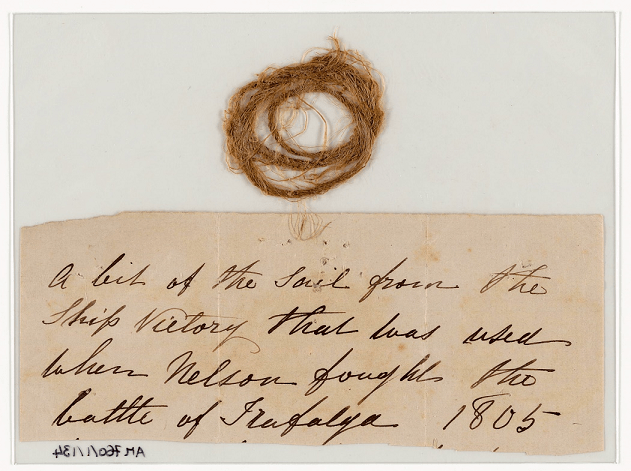 AM 760/1/134: A piece of sail from the Victory, used at the Battle of Trafalgar, 1805