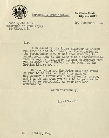 However, after a period of aviation revival in peace time, Cecil was once again involved with military duties when the Second World War broke out in 1939. This time, Cecil joined the Royal Air Force, which had been established in 1919 after it was evident that the use of aviation in the military was indispensable. For his service, Cecil was awarded the Air Force Cross in 1944. Then, in 1947, he was appointed a Member of the Order of the British Empire (M.B.E.). Cecil did not resign from the RAF until 1954.