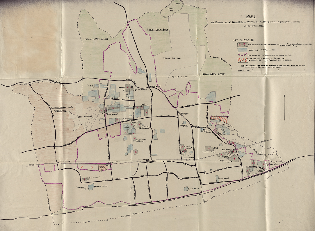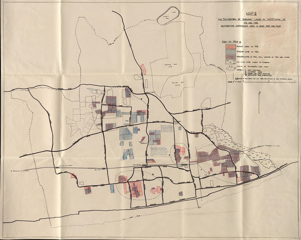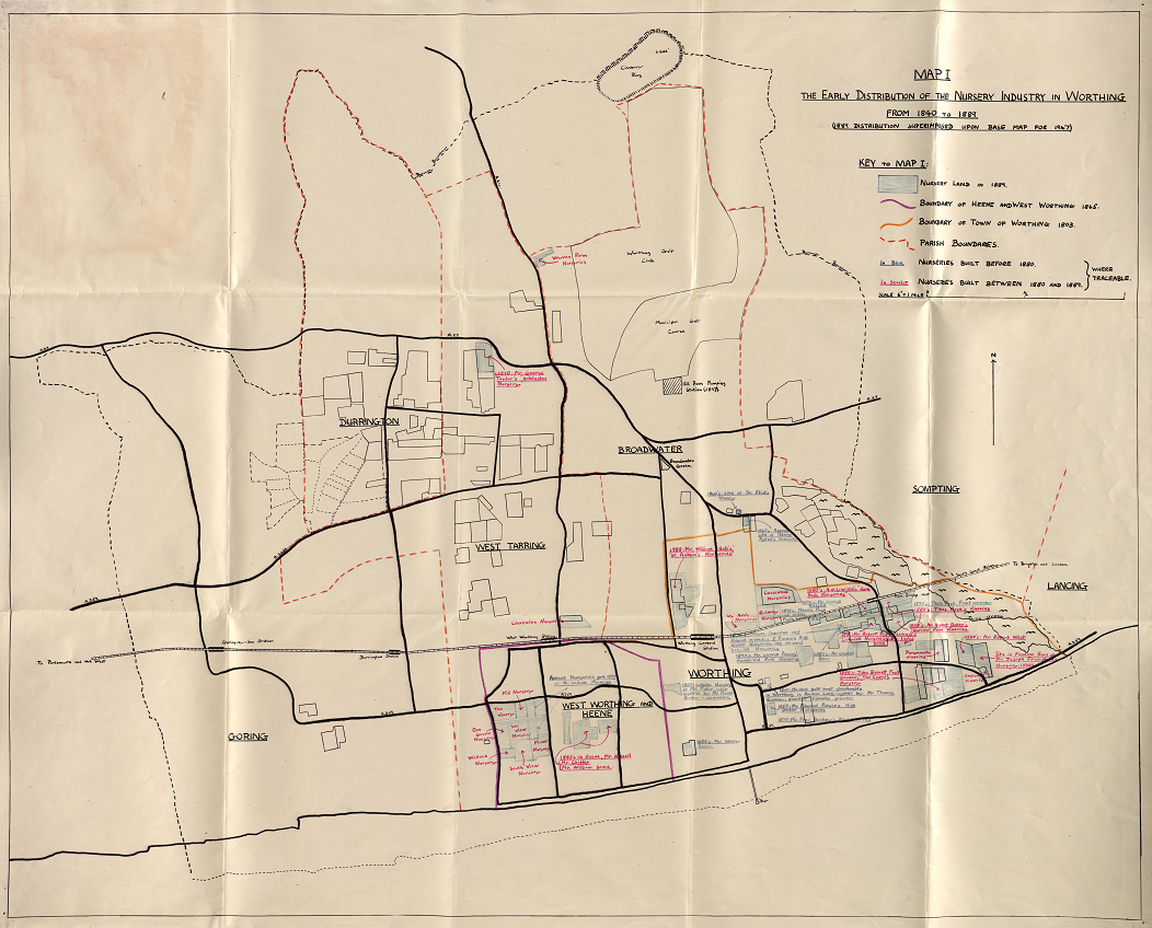Yet, the success of the market gardens in many ways contributed to their decline. Unable to make time and space for crop rotation due to demand, the quality of the soil degraded; a problem which was expensive to fight. Competitors on the continent came up with more efficient methods of growing crops, and years of recession in the 1890s and inter-war period impacted the businesses hard. After the Second World War, the glass-house crops industry declined further. Worthing’s ever-growing population needed somewhere to live, and land became in high demand for building new neighbourhoods. By the 1970s, many of these once thriving businesses were no more, but records still exist bringing back memories of these businesses and the families who ran them.