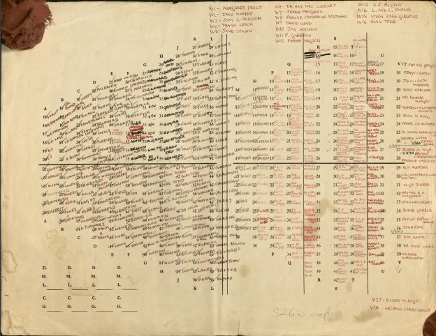 Plan of Main House seat plaque names, c1961. CFT 1/1/6/1.