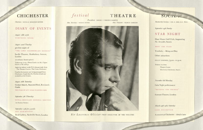 “Chichester’s new Festival Theatre will open on Tuesday largely because Mr Leslie Evershed-Martin did not know that the whole thing was quite impossible… Olivier is now in charge… and with a cast list that reads like an extract from a theatrical Who’s Who.”