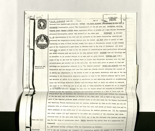 Copy of lease between The Mayor, Aldermen, and Citizens of Chichester and CFT Trust Ltd re CFT land use. CFT 1/4/4/1.
