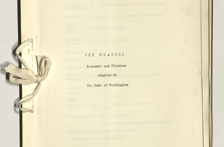 Script of The Chances by John Fletcher, adapted by The Duke of Buckingham, 1962. CFT 2/1/1/1/2.