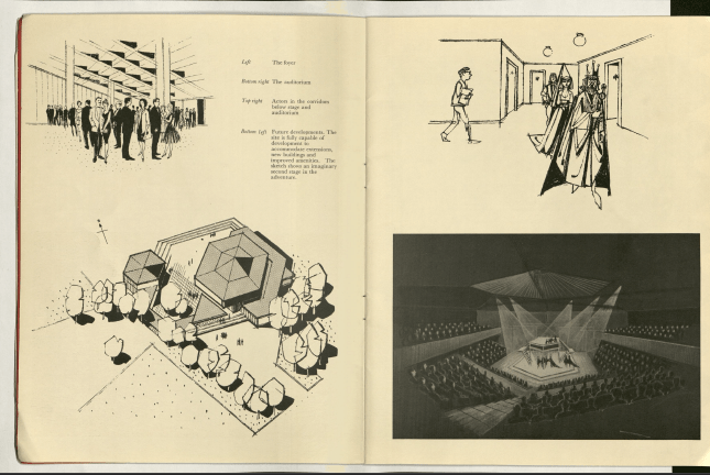 “The arena theatre with its auditorium on three sides of the stage and cantilevered over the foyer will be the first permanent one of its kind to be built for the new style three-dimensional presentation in the United Kingdom.”
