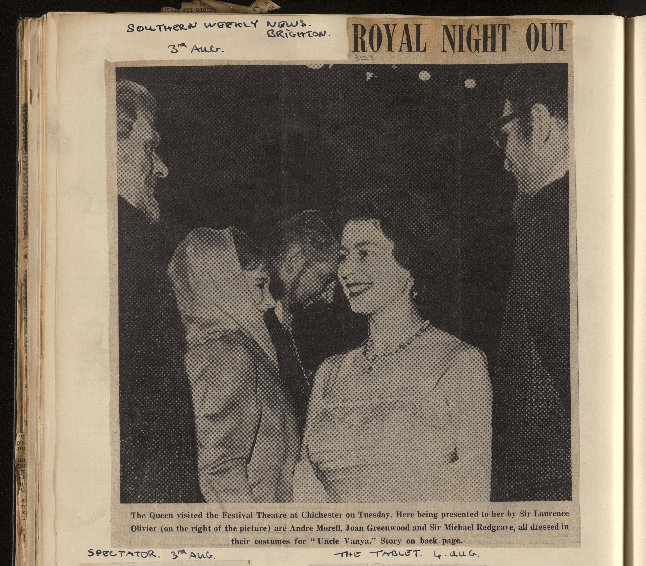 The CFT’s first season, which culminated with Uncle Vanya and starred Sir Olivier, Sir Michael Redgrave and Joan Plowright, was given the royal seal of approval on 21 July 1962 when Queen Elizabeth II visited.