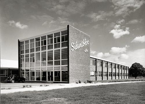 Silentbloc was initially based in Notting Hill Gate before its move to Crawley. Founded in 1933, Silentbloc designed and manufactured rubber components used to control vibration. Their products were used in cars and planes as well as having many other applications. It takes its name from its primary product called a ‘silent block’ – literally a tube-like element used to silence the noise of vibration.