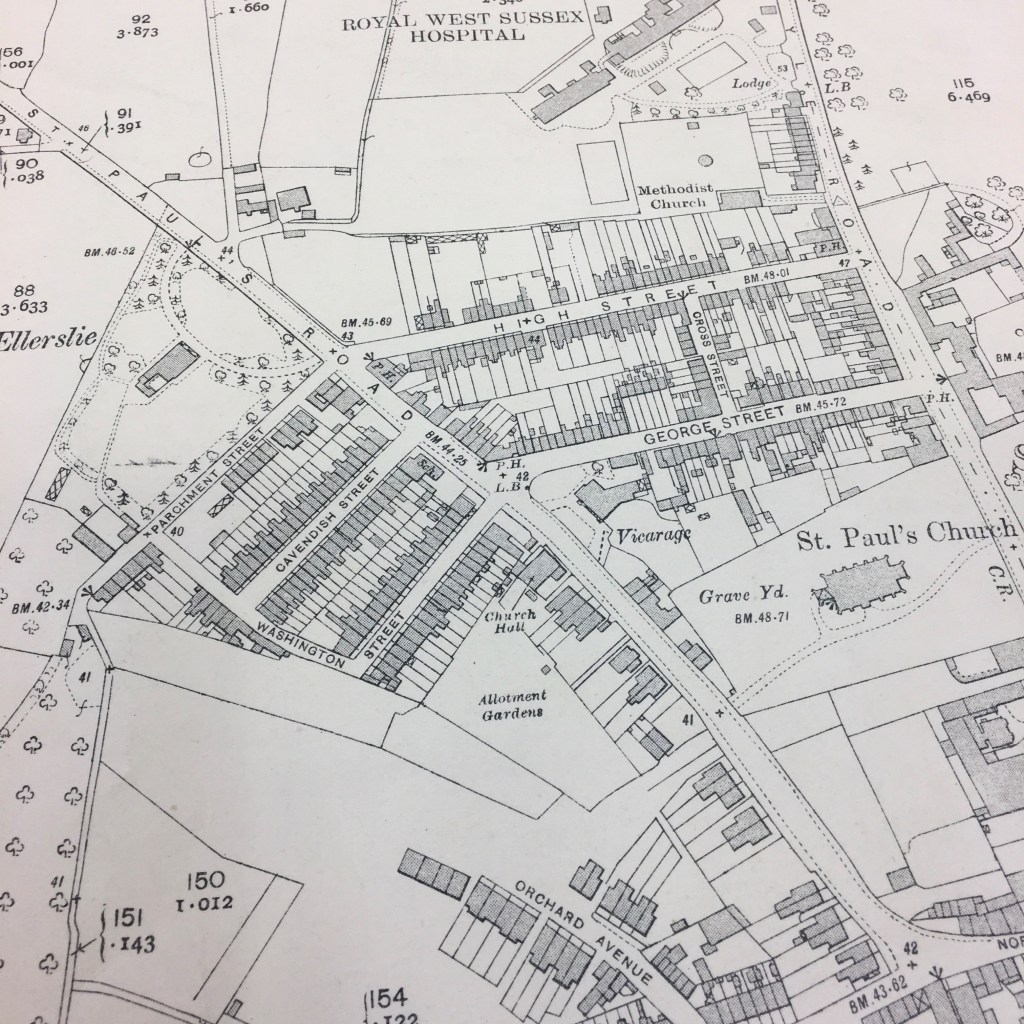 Having moved to Chichester recently to take up the role of Searchroom Archivist at the West Sussex Record Office, I have been developing my different branches of research that our researchers utilise. Although doing such exercises enables me to provide a better service, it also satisfies my own curiosities. I have come to know Cavendish Street on my journey to work and wanted to know more about the history. This blog will briefly take you through the research I completed into this street through the use of maps.
