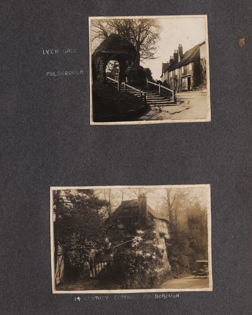 This scrapbook was neatly broken down each leg of the holiday into chapters. Chapter I documents their ride through Leatherhead, Norbury Park, Box Hill, Dorking and then stopping to stay for two nights in Capel. Chapter II starts in typical British summertime fashion: the weather did not look promising as rain set in. The party decided to explore the farmhouse of the land they were staying on and relax at the camp after the rain had ceased.