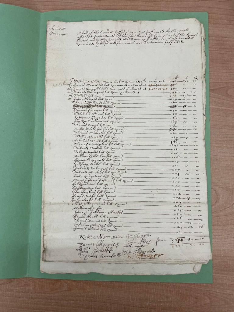 Our archive also holds papers concerning compensation for civil war damage for Arundel (Arundel Borough/M9) from c1645-1649. These include a petition to parliament and a list of inhabitants with the value of the damage they are claiming. The total amount claimed comes to over £3700, which is around three quarters of a million pounds in 2024. As the claims are only for damage done by the King’s forces it is likely that the real total was much higher.