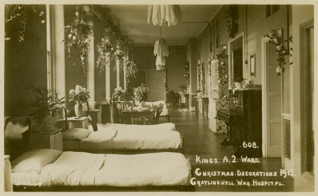 ‘Kings A2 ward, Christmas decorations 1915, Graylingwell War Hospital’