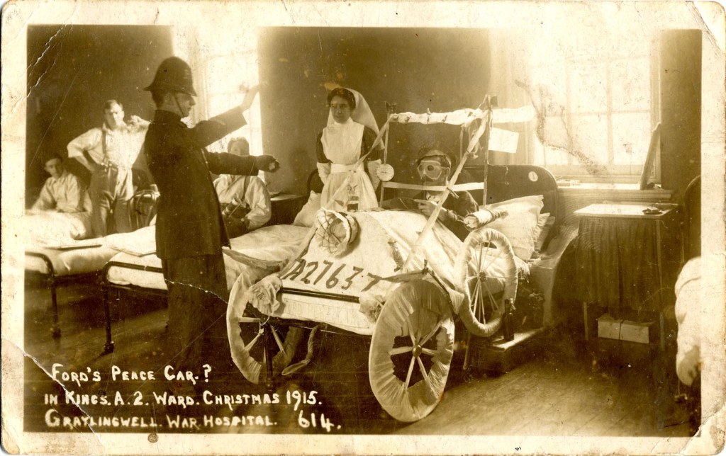 ‘Ford’s peace car. In Kings A2 ward, Christmas 1915, Graylingwell War Hospital’