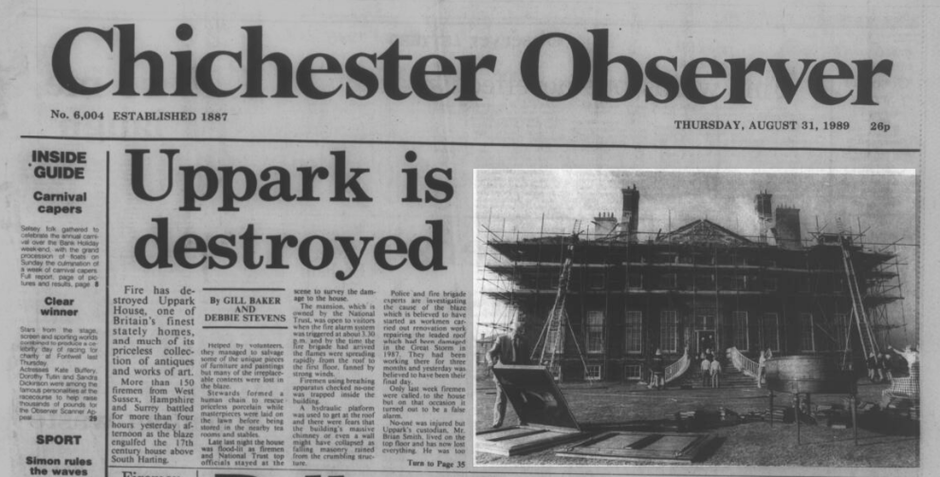 In 1989 a devastating fire broke out at Uppark. “More than 150 firemen from West Sussex, Hampshire and Surrey battled for more than four hours”- Chichester Observer – Thursday 31 August 1989.
