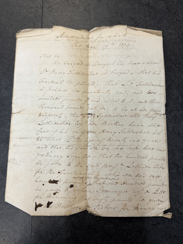 Copy of extract from the will of Sir Matthew Fetherstonhaugh,