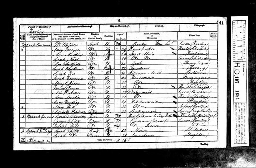 Amongst the many servants of Uppark in the 1851 census is Sarah Wells, née Neal (1822 – 1905) housekeeper for Miss Frances Bullock Featherstonhaugh and mother of H.G. Wells.