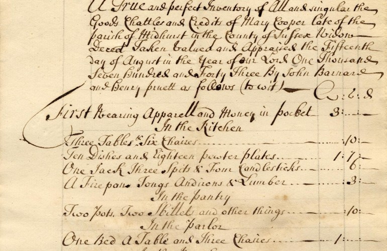 Continue reading ➞ Probate inventory for Mary Cooper of Midhurst, 1743 (Ep/I/29/138/235)